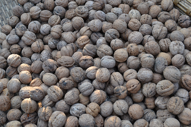 ▲ 今秋,李现法房前屋后100多斤的核桃全部被苏宁高价收走,乐得合不拢嘴