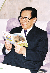 1995年3月 时任中共中央总书记江泽民外地考察工作回京时在专机上阅读《点点大小盘》