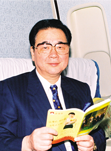 1995年,时任中共中央政治局常委、国务院总理李鹏在飞机上阅读《点点大小盘》