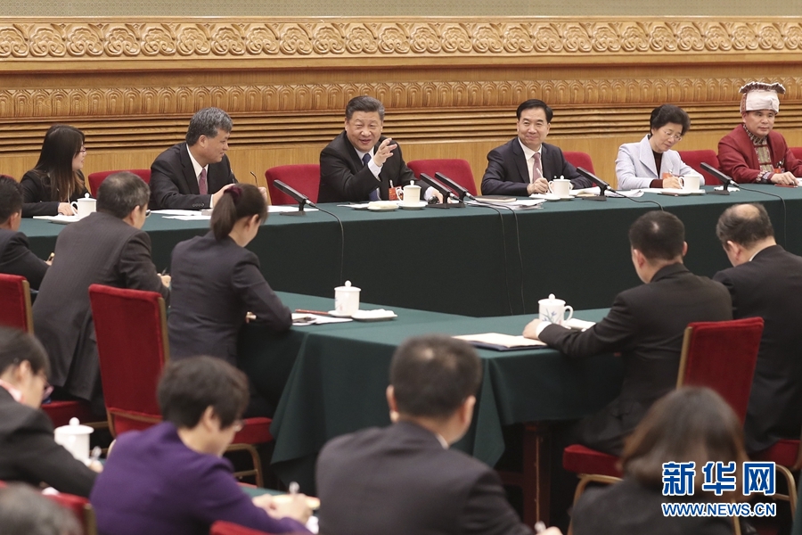 3月7日,中共中央总书记、国家主席、中央军委主席习近平参加十三届全国人大一次会议广东代表团的审议。 新华社发(盛佳鹏 摄)